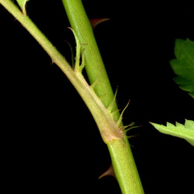 | Hair-like stipules at leaf bases of Rosa multiflora |