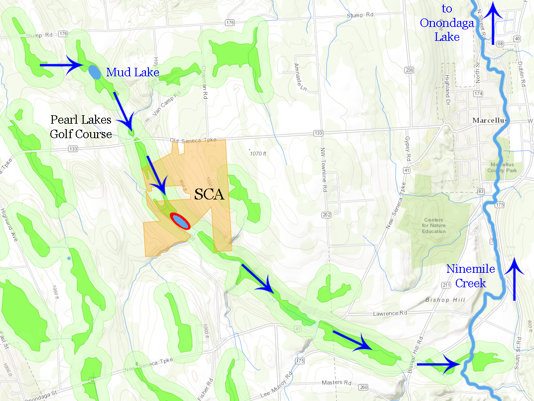Previous Image Next Image Phragmites area-11 Ninemile Creek flows north to Marcellus and Camillus and on to Onondaga Lake.