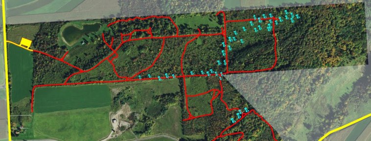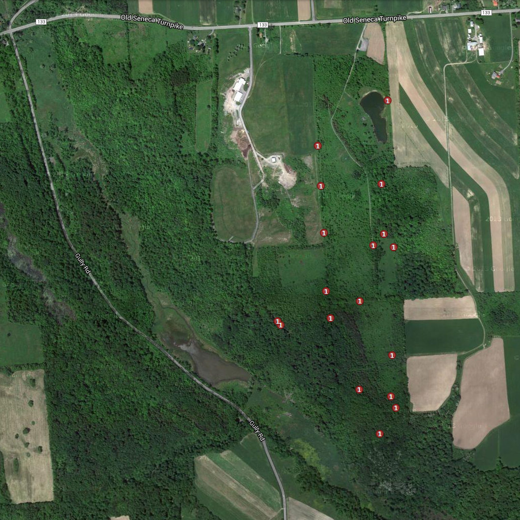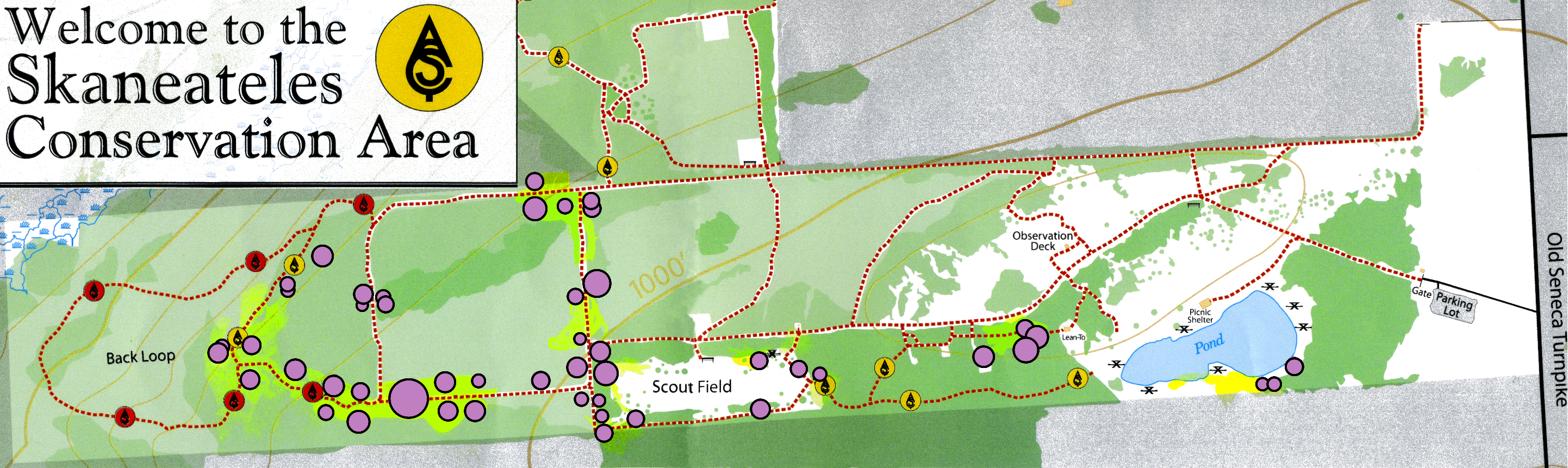 | Observations of Cynanchum rossicum, May 23, 2015. Yellow observations made by Ken Kaufman, purple by Randy Nonenmacher. |