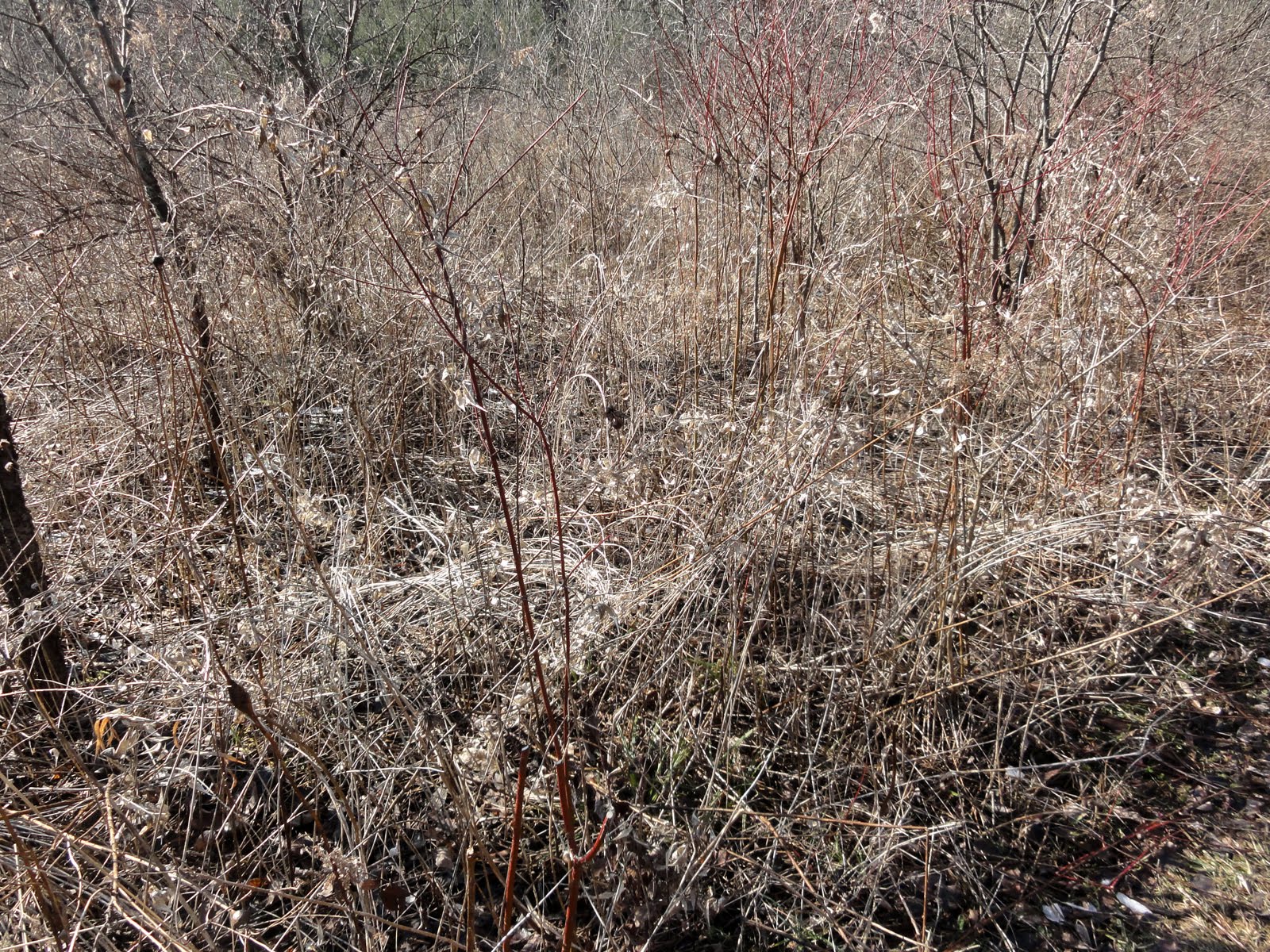 | Pale wallow-wort amongst Cornus sericea (left) and climbing Rosa multiflora (right), Feb. 17, 2012. | |