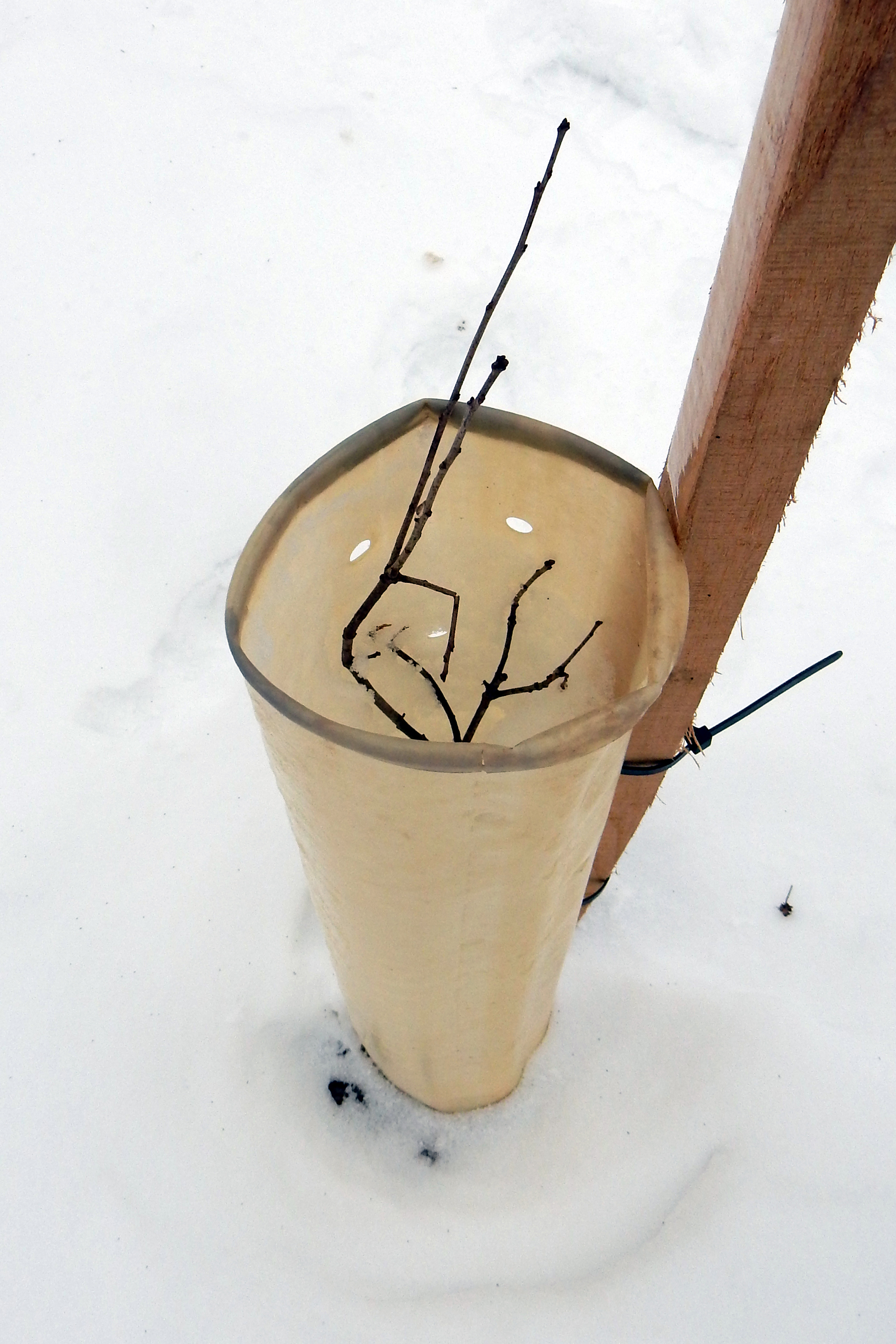 A few of the bur oak seedlings were planted in 18-inch shelter tubes, which were not high enough to fully contain the trees, some of which were closer to three-feet high. Because deer are known to browse bur oaks, the shelters should probably be replaced with taller ones. Or perhaps wire cages could be added, as was done with our chestnut trees.