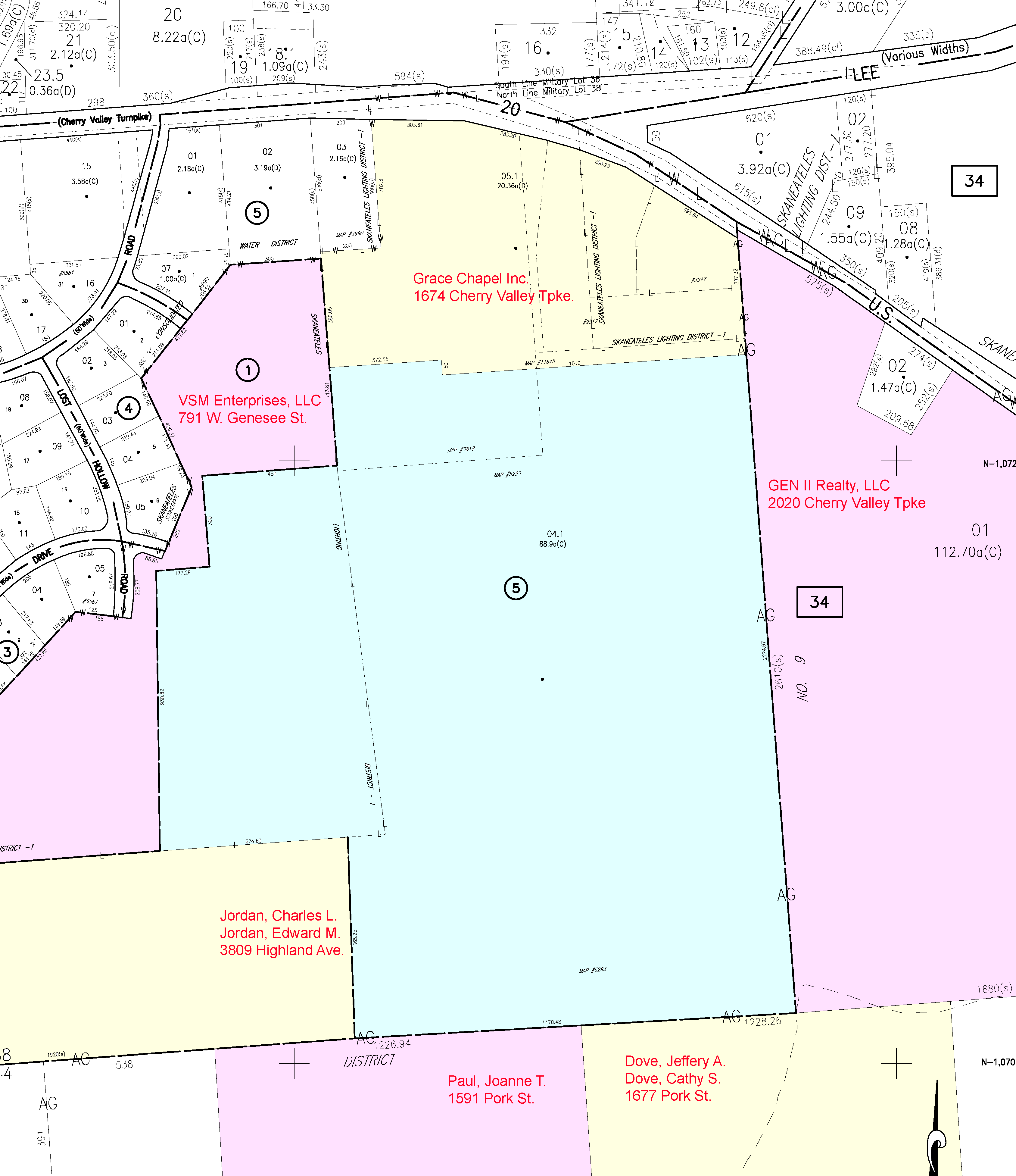 WHEREAS, application was made by Grace Chapel, Inc., 1674 U.S. Route 20, Skaneateles, New York 13152 (“Applicant”) for a lot line adjustment to its existing tax parce1042.-05-05.l (8.16± acre parcel) and the adjoining tax parcel 042. -05 -04.1 (110.10± acres) owned by the Town of Skaneateles to reflect the transfer of 12.2 acres by the Town of Skaneateles to Grace Chapel, Inc., which approval was articulated in the Planning Board’s written resolutions dated October 19, 2010 (“Approval”);