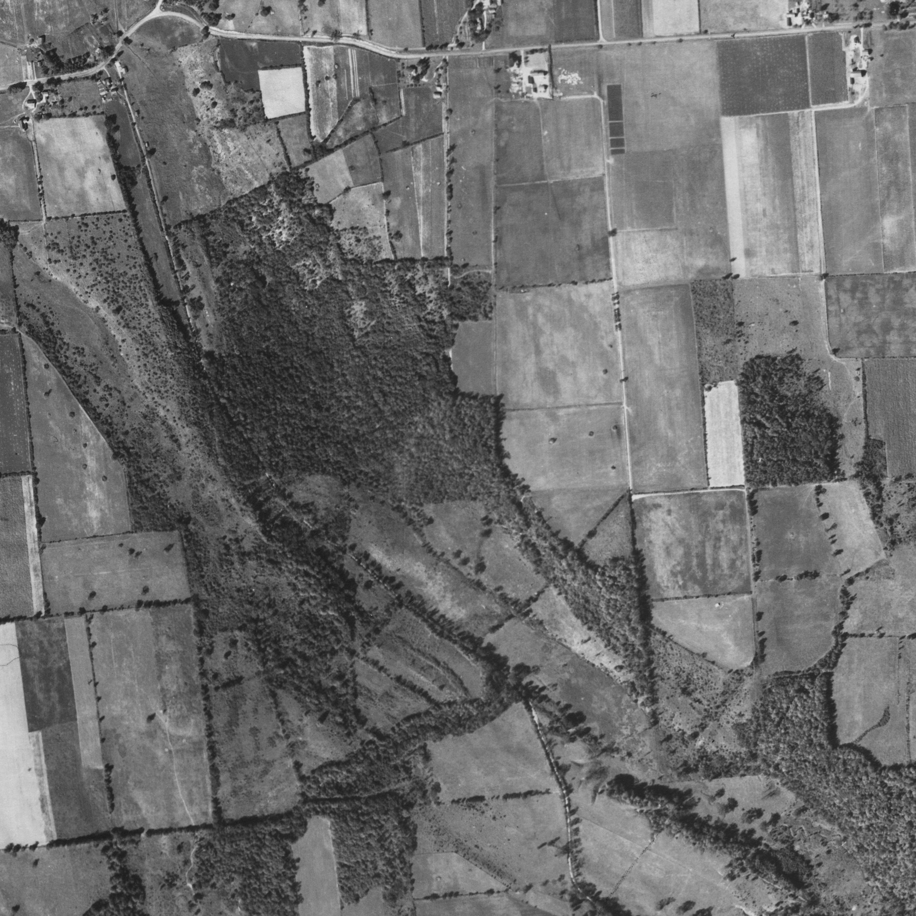 | Aerial view of USDA Soil Management Research Farm and Gully Road properties, Sep. 5, 1938. Cornell University Library |