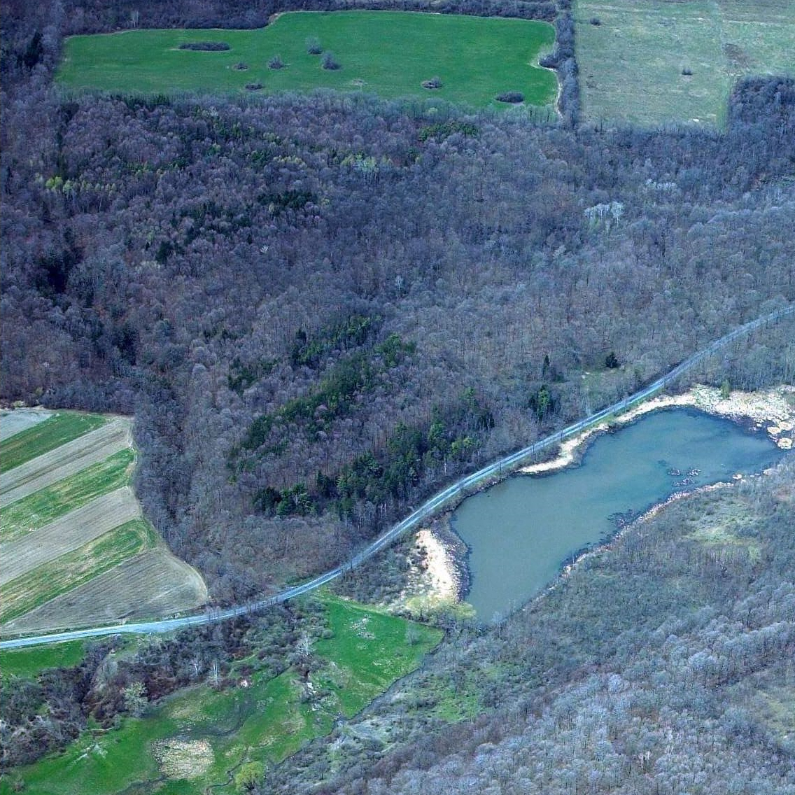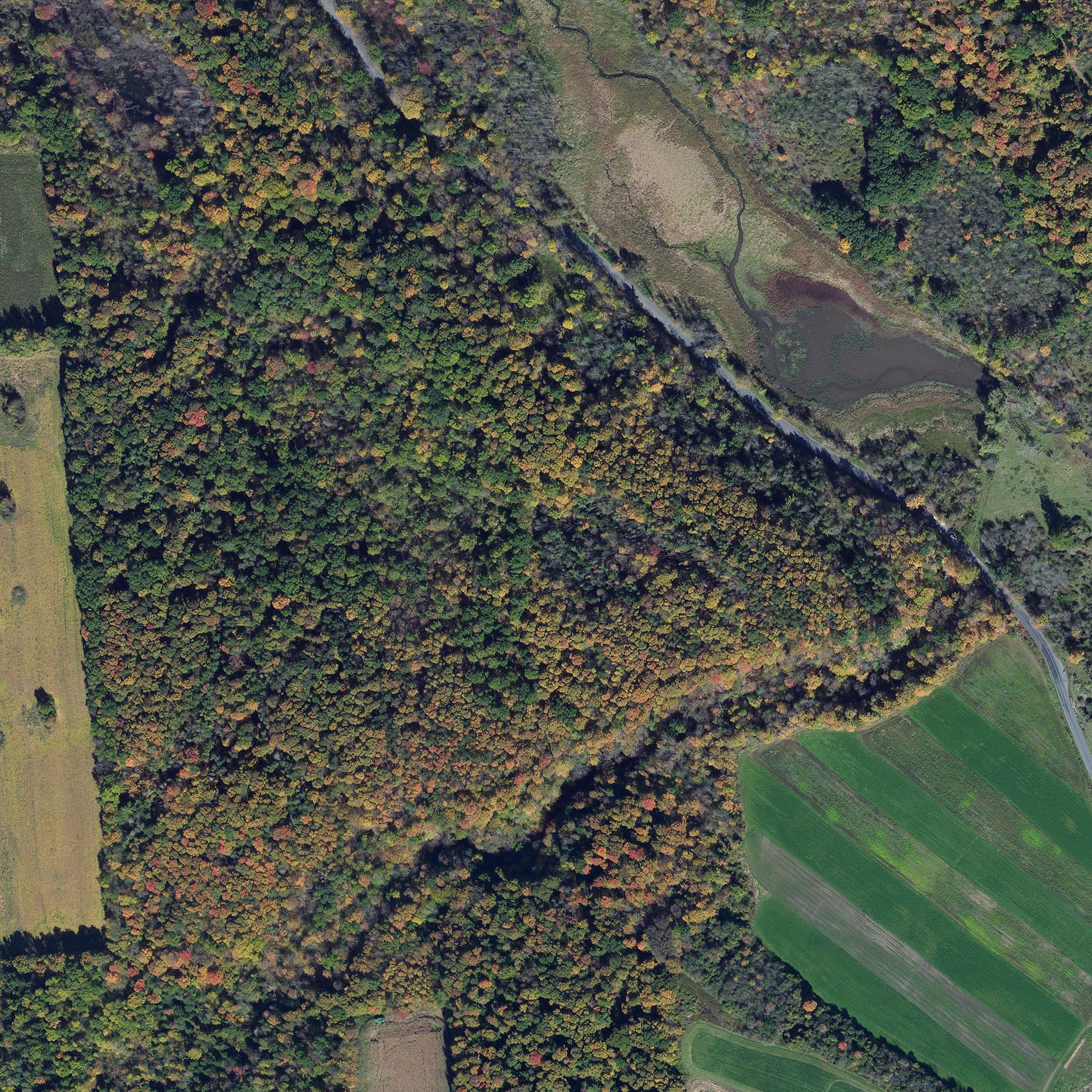The 57.67-acre Guppy Farm parcel was purchase by the Town of Skaneateles from Kathleen Evans on January 18, 2002. This parcel was later (between 2008 and 2014) combined with 2.05-acre Bishop land and adjacent 3.73-acre portion of the Federal Farm property on the west side of Gully Road, so that the combined parcel comprises 63.43 acres according to the 2014 county tax map.